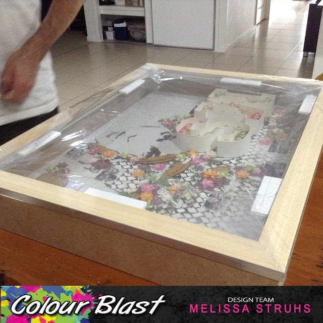 If you would like a refresh of the full tutorial you can check out Amity here...since then I attached some mini print black and white images of the Colour Blast gang to the canvas as well.